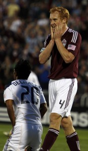 Home hasn't been that kind to the Colorado Rapids this season, as the expression on Jeff Larentowicz face indicates during a home loss to the LA Galaxy. (Photograph by Jonathan Ingraham/ColoradoSoccerNow.com)
